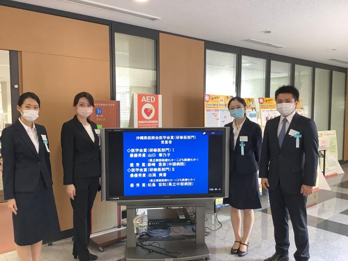 沖縄県医師会主催で開催する年2回の医学会では「医学会賞(研修医部門)」を設け、県内の研修病院から選ばれた研修医の中から、選考委員による審査を行い、優れた症例報告をした研修医を表彰しています。